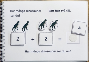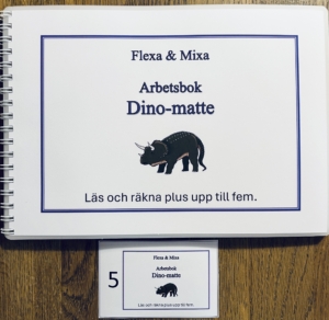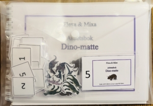Dino-matte består av plastlaminerade och spiralbundna arbetsböcker i A5-format med fem arbetssidor, man arbetar bara på högersidorna. Alla sidor är ”rena”, utan ovidkommande illustrationer eller sidnummer som kan vara störande. Består av 12 böcker, som håller sig inom talområdena 1 – 5 och 6 – 10. De kan köpas var för sig eller till paketpris med fyra valfria böcker.